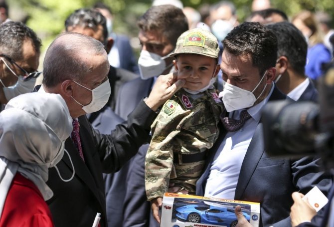 Erdoğan, önceliği millet ve memleket olan herkesle Türkiye ortak paydasında buluşmaya gayret edildiğini belirterek, "Türk siyasetinin 84 milyonu ilgilendiren meselelerde milli mutabakat ruhu ile hareket etmesi gerektiğine inanıyoruz. Siyasi partilerimiz, fikirlerimiz, hayata bakış açılarımız farklı olsa da hepimiz aynı vatanın, aynı toprağın, aynı iklimin insanıyız. Kökenlerimiz, görüşlerimiz ayrı olsa da hepimiz binlerce yıllık ortak bir mazinin kıyamete kadar sürecek ortak bir geleceğin sahipleriyiz. Al bayrağımız bağımsızlığımızın sembolleridir" ifadelerini kullandı.