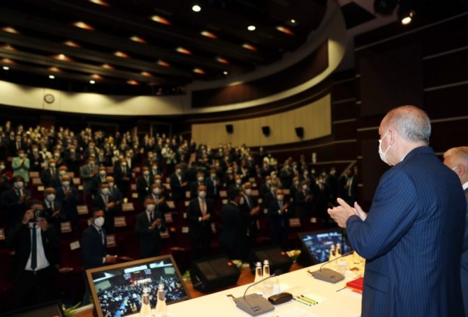 Cumhurbaşkanı Erdoğan, "Bugün Türkiye, bölgesinde ve dünyada egemenlik haklarını gerçek anlamda kullanabilen az sayıdaki ülkelerden biridir. Küresel, siyasi ve ekonomik düzen köklerinden çatırdarken, biz ülke olarak önümüze çıkan fırsatları en iyi şekilde değerlendirmenin çabası içindeyiz. Bu gücümüzün ve özgüvenimizin gerisinde 19 yıllık iktidarımızda ülkemize kazandırdığımız eser ve hizmetlerle kurduğumuz sağlat alt yapı vardır. Salgın döneminde bu alt yapının önemini ve faydalarını tecrübe ettik" diye konuştu.