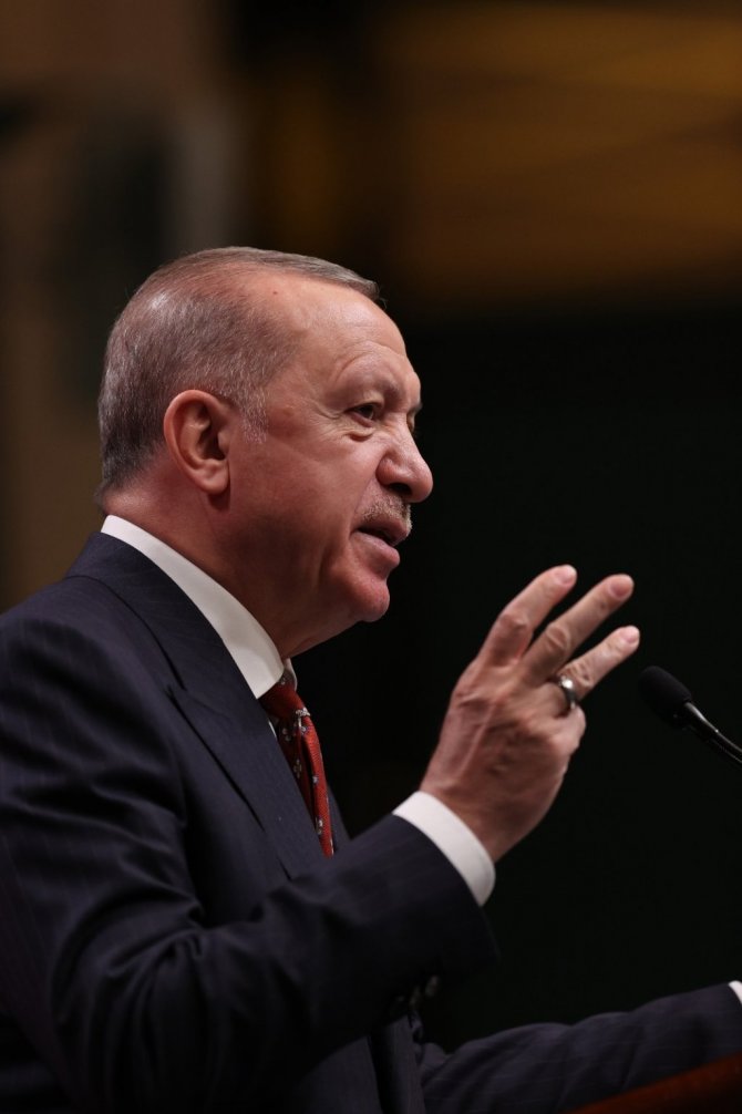 Erdoğan, "Küresel yönetim ve ekonomi sisteminin yeni baştan yapılandığı şu süreçte Türkiye'yi hak ettiği yere getirmek için son iki asrın önemli fırsatını yakalamış durumdayız. Sürekli altını çizdiğimiz 2023 hedefleri ve 2053 vizyonu Türkiye için sıradan siyasi söylemler değil, tarihi bir kavşak noktasının ifadesidir" dedi.