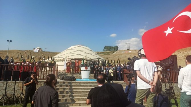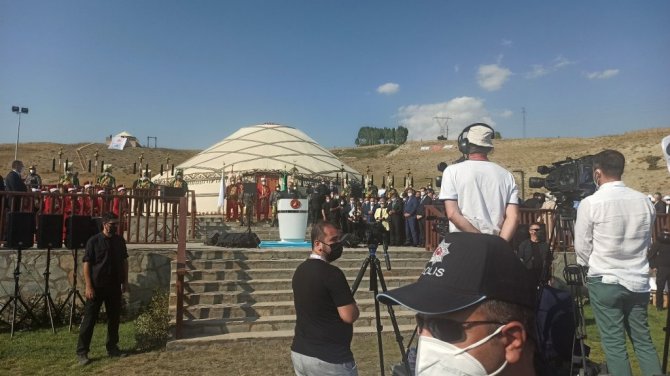 Muş'tan helikopterle Bitlis'in Ahlat ilçesine gelen Cumhurbaşkanı Recep Tayyip Erdoğan, ilçe merkezine yaklaşık 10 kilometre uzaklıkta bulunan etkinlik alanına geçmeden önce eşi Emine Erdoğan, MHP Lideri Devlet Bahçeli, Kültür ve Turizm Bakanı Mehmet Nuri Ersoy, Çevre ve Şehircilik Bakanı Murat Kurum, Sağlık Bakanı Fahrettin Koca, Adalet Bakanı Abdulhamit Gül, Milli Savunma Bakanı Hulusi Akar, Jandarma Genel Komutanı Orgeneral Arif Çetin, Emniyet Genel Müdürü Mehmet Aktaş ve Okçular Vakfı Genel Başkanı Haydar Ali Yıldız ile birlikte bölgenin en büyük Türk ve İslam mezarlığı olan Ahlat Selçuklu Meydan Mezarlığı'nı ziyaret etti.