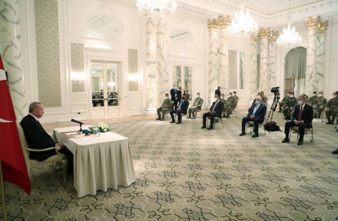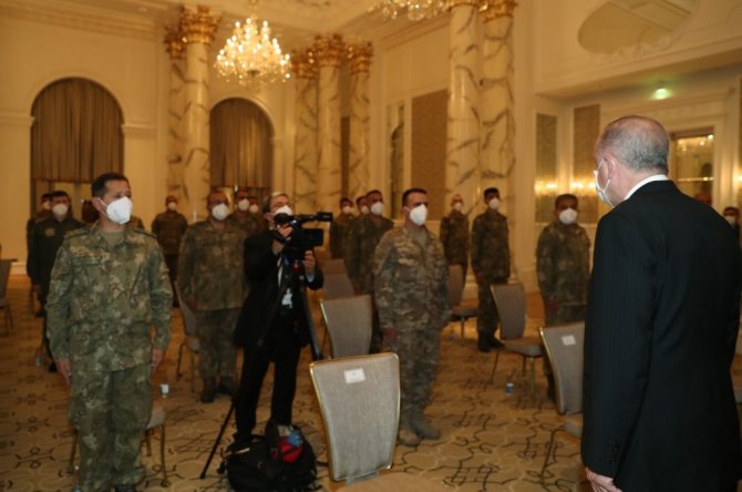 Cumhurbaşkanı Recep Tayyip Erdoğan, Azerbaycan temasları kapsamında başkent Bakü'de Azerbaycan Görev Grubu'ndaki askerler ile bir araya geldi. Erdoğan'a Milli Savunma Bakanı Hulusi Akar, Gençlik ve Spor Bakanı Mehmet Muharrem Kasapoğlu, Kültür ve Turizm Bakanı Mehmet Nuri Ersoy, Tarım ve Orman Bakanı Bekir Pakdemirli, Türkiye'nin Azerbaycan Büyükelçisi Cahit Bağcı ve AK Parti Genel Başkanvekili Binali Yıldırım eşlik etti.