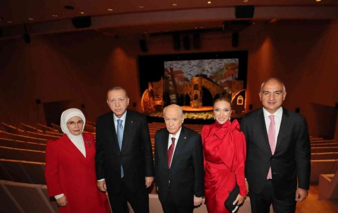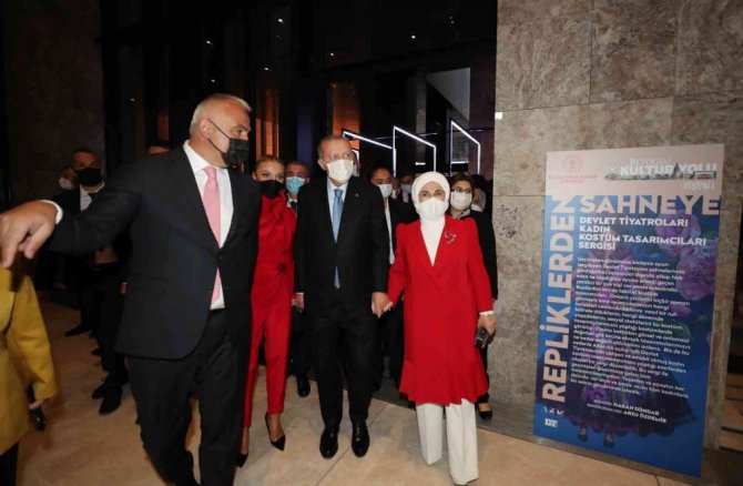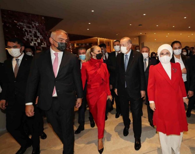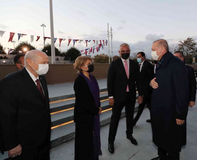 Atatürk Kültür Merkezi'nin açılışından dolayı mutluluk duyduğunu ifade eden Cumhurbaşkanı Erdoğan, "Cumhuriyetimizi 98 yıl dönümüne erişmenin sevincini yaşadığımız bu gün ülkemize ve İstanbul'umuz kültür sanat eseri kazandırmanın mutluluğu içindeyiz. Bilindiği gibi taksimde 75 yıl önce temeli atılan Atatürk Kültür Merkezi uzunca bir süre önce artık kullanılamaz hale gelmişti. Aslında biz İstanbul'un sembol yapısını yeni baştan inşa etmek için uzun yıllar önce harekete geçtik. Ancak attığımızı her adımda engellendik. Eski Türkiye'nin köhnemiş yüzünün sembolü olan her tarafı dökülen işlevleri yerine getiremeyen Atatürk Kültür Merkezi'ni yıktırmamak için yapılan kampanyaları hatırlıyoruz. Biz en başından bu yana orasını yıktıktan sonra yerine çok daha güzelini estetiğini kullanışlısını yapacağımızı söylüyoruz. Buna rağmen kimi çevrelerle ideolojik saplandı, siyasi hesaplaşma, kaos çıkarma vesilesi haline dönüştürülecek bize ve ülkeye vakit kaybettirdiler. Gezi olayları sırasında nasıl terör örgütlerinin gövde gösterisi yerine dönüştürüldüğünü unutmadık. Bütün bu sorunları aşarak gereken hazırlıkları yaptık, 2019'da yeni binanın temelini attık. İlk AKM binası gibi bu eserin de mimarı Tabanlıoğlu ailesi oldu. Toplam alanı 95 bin metrekareyi bulan bu esiren inşası 2.5 yıl gibi rekor bir sürede tamamlandı" dedi.