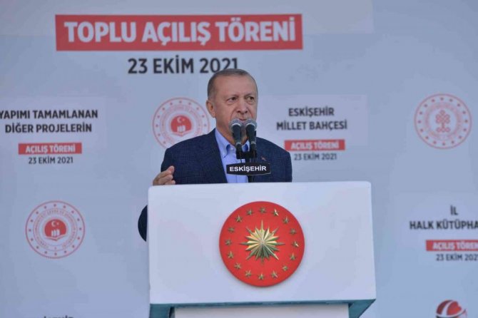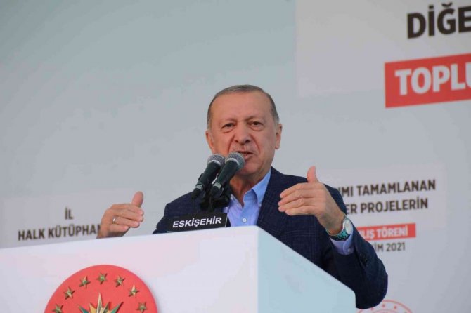 Cumhurbaşkanı Erdoğan, ülkeye kazandırdıkları eser ve hizmetlere güvendiklerinin altını çizerek, "Eskişehir'den başlayalım. 81 vilayetimizin tamamında insanlarımıza bu hakikatleri anlatmak için arkadaşlarımızla birlikte gece gündüz çalışıyoruz, çalışacağız. Türkiye'nin 2023 imtihanını da başarıyla verdiğinde Allah'ın izniyle gerçekten 21. yüzyılın parlayan yıldızı olacağından zerre kadar şüphe duymuyoruz. Bunun için de üzerimize ne düşerse yapacağız. Değerli kardeşlerim; atalar, "Tarlada izi olmayanın, harmanda yüzü olmazmış" derler. Biz tarladaki izimize yani ülkemize bugüne kadar kazandırdığımız eser ve hizmetlere güvenerek milletimize mutlu, güzel bir gelecek vaat ediyoruz. Muhalefetin aynı yalanları iftiraları döndürüp dolaştırıp tekrarlamasının 84 milyonun tek bir ferdine bile en küçük bir faydası yok, ama bizim 81 vilayetimizin her birine kazandırdığımız eser ve hizmetlerin her bir insanımızın günlük hayatında somut karşılıyorlar" diye konuştu.