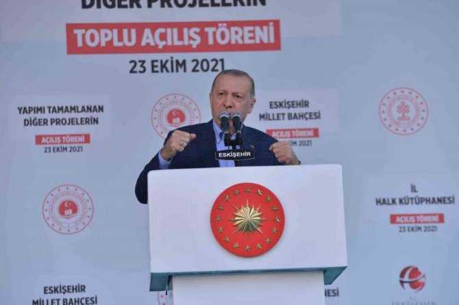 Cumhurbaşkanı Erdoğan, Eskişehir programı kapsamında Vilayet Meydanı'nda gerçekleştirilen törende vatandaşlara seslendi. Ekonomisi dünya ile bütünleşmiş petrol başta olmak üzere sanayisinde kullandığı ürünlerin çoğunu dışarıdan alan bir ülke olarak bu fiyat artışlarından Türkiye'nin de etkilendiğine dikkat çeken Cumhurbaşkanı Erdoğan, "Özellikle enerjide önemli bir bölümünü devlet olarak kendimiz üstlenerek küresel fiyat artışlarını vatandaşlarımıza en az seviyede yansıttık. Bunun bile özellikle insanımıza yaşattığı sıkıntıların farkındayız. Yatırımları teşvik edecek, üretimi artıracak istihdamı güçlendirecek, ihracatı teşvik edecek bir ekonomi politikasıyla bu küresel krizi ülkemiz için tarihi bir fırsata dönüştürmek istiyoruz. Türkiye'yi faiz, kur, enflasyon kıskacından kurtarmanın yolunun ülkemizi işte bu dört ayak üzerinde inşa etmekten geçtiğine inanıyoruz. Yaşadığımız sıkıntılar geçicidir, ama emin olun elde edeceğimiz kazançlar nesiller boyu devam edecektir. Bize karşı muhalefet edenlerin bu ülkenin geçmişinde en küçük bir eserleri bulunmadığını, tam tersine yaşanan nice acıların olduğunu unutmayınız."