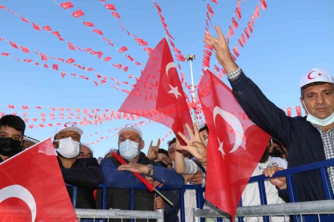 Muhalefetin ülkeyi ölmüş, bitmiş göstermek için bin dereden su getirdiğini savunan Cumhurbaşkanı Erdoğan, "Ülkemizin kıtayla olan ekonomik potansiyelini 25 milyar dolardan 50 milyar dolara çıkarmak için ter dökerken onlar kendi kinleri ve nefretleri içinde debelenip duruyor. Dünyanın en büyük projelerinin ülkemizde inşa edildiği bir dönemde bunlar ülkeyi ölmüş, bitmiş göstermek için bin dereden su getiriyor. Biz ise onların ülkeyi kötülemek için su getirdikleri o derelere kurduğumuz projelerle, barajlarla, elektrik santralleriyle, bentlerle milletimize hizmet götürüyoruz. Farkımız bu. Kardeşlerim, bunların tek gayesi dışarıdan kulaklarına üflenen sufleleri tekrarlayarak ülkenin ve milletin hayrı için yapılan her işe engel olmak, takoz koymak, izlenen her politikayı zayıflatmaktır. Öyle ki sırf bizi engellemek için terör örgütleriyle birlikte de yol yürürler. Darbecilerin yanlarında da dururlar" diye konuştu.