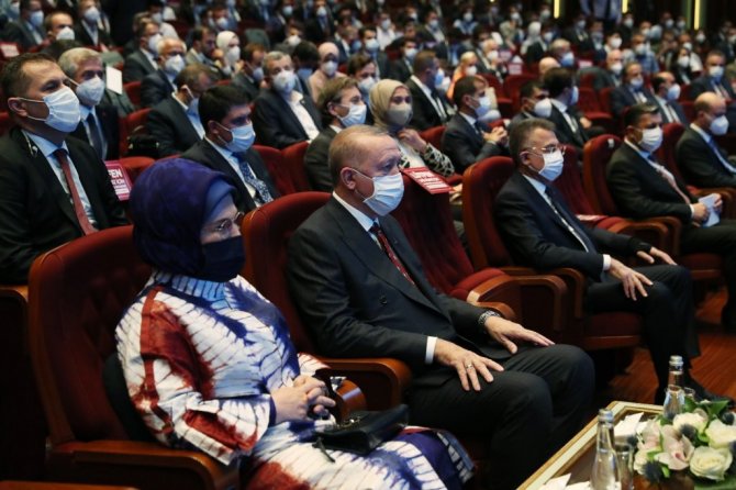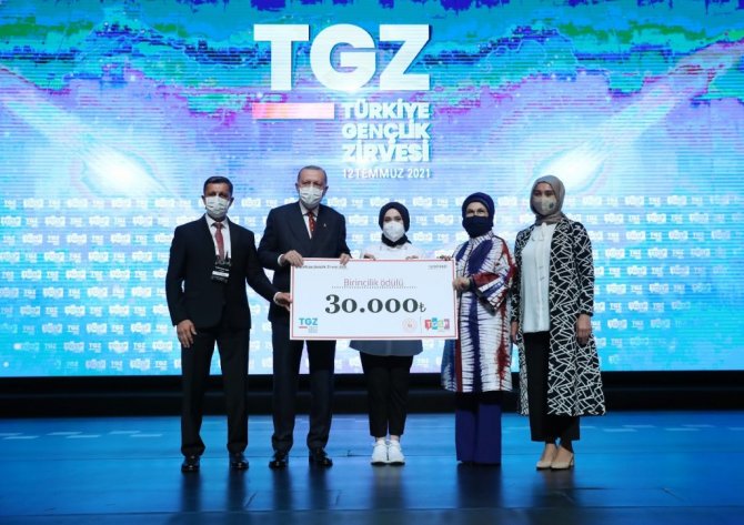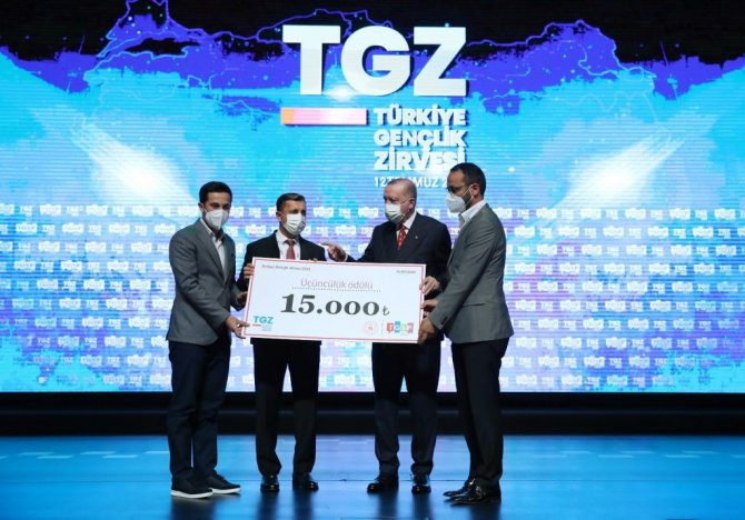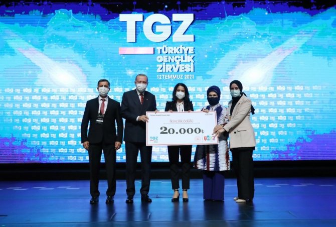 Haziran ayında sporcuların uluslararası müsabakalarda elde ettikleri madalya sayısının 54'ü geçtiğini hatırlatan Erdoğan, "Ülkemizi başarıyla temsil eden sporcularımız arasında devletin koruması ve bakımı altında olan 14 evladımız da bulunuyor. Devletimizin sahip çıktığı bu ençlerimiz sporun yanı sıra sanat ve bilimde de kendilerinden söz ettiriyor. Türkiye'nin gençleri 2020 araştırması 34 ilden 8 bin 200 genci kapsaması ve sonuçları itibari ile ufuk açıcı bir çalışmadır. Bu rapor bizim ve gençlerle ilgili faaliyet yürüten gönüllü kuruluşlarımız için de yol gösterici mahiyettedir. Gençlerimizin aileye, ailevi değerlere sahip çıkmaları, gelecekle ilgilim ümit var olmaları bu topraklara ve bağrından çıktıkları millete aidiyetlerinin güçlü olması son derece önemlidir. Bu tablo bize Türkiye'nin gençlerinin çoğu zaman onlar adına ahkam kesenlerden çok daha doğru çok daha sağduyulu şekilde ülkesini, dünyasını okuduğuna işaret ediyor. Sizler evelallah ülkemizin geleceğini hem inşa hem ihya edeceksiniz" ifadelerini kullandı.
