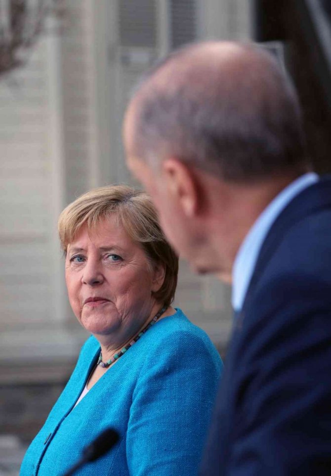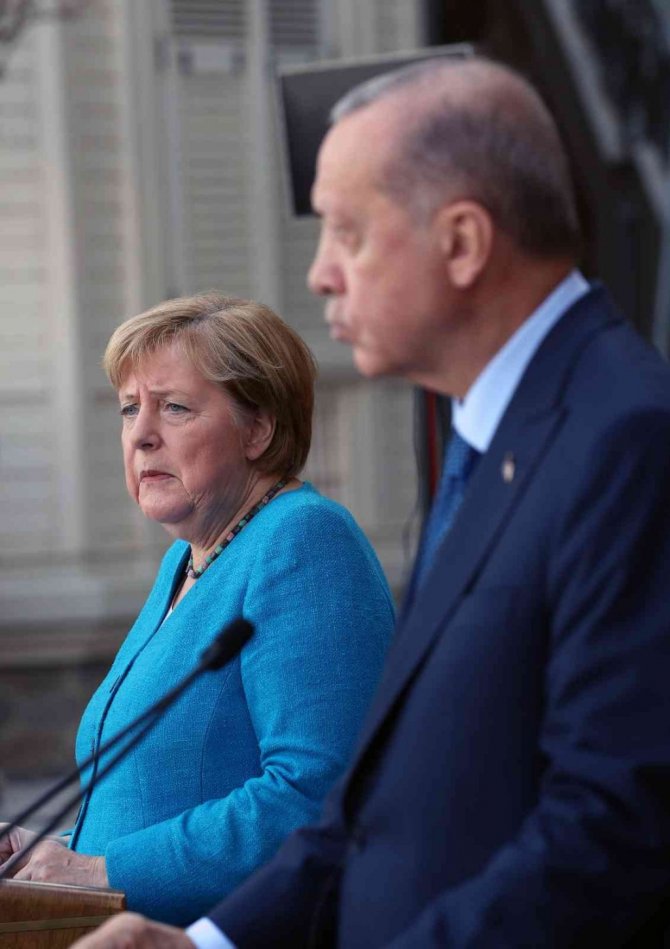 Almanya Şansölyesi Angela Merkel ise karşılama için Cumhurbaşkanı Erdoğan'a teşekkür ederek, "Son yıllarda görüş ayrılıklarına rağmen gerçekten Türkiye ile iyi ilişkiler için çabaladık. Bu iyi ilişkileri sürdürmek için karşımızda çok sayıda görev var. Örneğin 60. Yıldönümü işgücü anlaşmasının. Tabii ki Almanya'da yaşamakta olan 4 milyona yakın Türk kökenli insan. Bu iş gücü anlaşmasının yıl dönümünü kutladık törenlerle. Almanya'da artık doktor bilim adamı, akademisyen olarak çalışan, anne ve babaları ilk göçmenler olan insanların ne kadar örnek teşkil eden kariyerleri olduğun gördük. Bunlardan ikisi de Uğur Şahin ve Özlem Türeci. Biz ikili ilişkilerimizin gündemini ele aldık. Bu vesile ile Türkiye'de bulunan tutuklu bulunan veya yurt dışına çıkış yasağı bulunan Alman vatandaşlarının durumuna da değindik. İnsan hakları konularını ele aldık. Almanya'da ırkçılık ve yabancı düşmanlığı olaylarına hem kendim, hem eyalet hükümetleri olarak karşı çıktık. Türkiye AB ilişkilerine değindik. Yasadışı göç konusu önemli bir konu. Türkiye'ye AB'ni bu konuda vereceği desteğin devam edeceğini de ifade ettim. Suriyeli mülteciler konusunda Türkiye önemli çalışmalara imza attı. Aynı zamanda insan kaçakçılarına karşı mücadele konusunda işbirliğimiz sürüyor. Afganistan'a insani yardım konusunda da görüştük. BM ile birlikte bu kış Afganistan'da felaketler yaşanmaması için çabalamalıyız. Taliban ile olan görüşmeler hakkında da bilgi aldık. Biz de Afganistan sorumlularımızla bunu ele alacağız. Suriye'deki durum konusunda yoğun bir bilgi alışverişinde bulunduk. Maalesef BM himayesinde anayasa komisyonu çalışmaları iyi ilerlemiyor. İdlib'deki durum da gergin. Libya konusunu ele aldık. Berlin konferansı ardından bir diğer konferans Fransa'da olacak. Burada en kısa sürede seçimlerin yapılmasını arzu ediyoruz. Bunun için Libya'dan yabancı güçlerin çekilmesinin gerektiğin ifade ettim. Sudan ve Suriye'den gelen paralı askerlerin burada bulunması söz konusu" şeklinde konuştu.