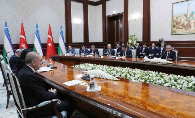Cumhurbaşkanı Recep Tayyip Erdoğan, Özbekistan Cumhurbaşkanı Şevket Mirziyoyev'in resmi davetlisi olarak temaslarda bulunmak üzere Özbekistan'a geldi. Cumhurbaşkanı Erdoğan, resmi karşılama töreninin ardından Özbekistan Cumhurbaşkanı Şevket Mirziyoyev ile yaptığı ikili görüşmenin ardından heyetler arası görüşme gerçekleştirdi.