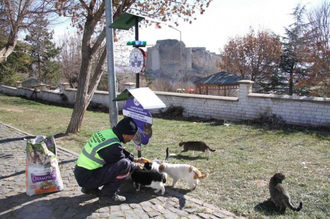 Osmanlı Geleneğini yaşatmak istediklerini belirten Elazığ Belediyesi Veteriner İşleri Müdürü Fethi Aslantaş, "Cumhurbaşkanımızın yapmış olduğu açıklamalarda Osmanlı'nın kış aylarında sokak hayvanlarıyla ilgili ağaç dallarına meyve asılmasıyla ilgili vatandaşlarımızı bilgilendirmesi üzerine bizler de Elazığ Belediyesi olarak çalışmalarımızı hızlandırdık. Ağaç dallarına elma gibi ürünler asarak bizlerde bu geleneği sürdürmeye başladık. Bizler de Elazığ Belediyesi Veteriner İşleri Müdürlüğü olarak Türkiye'de ilk olan bir proje, kedi, köpek ve kuşların bir arada beslendiği sokak hayvanları beslenme standını 90 adet olmak üzere parklarımıza ve şehrimizin belirli noktalarına yerleştirdik. Vatandaşlarımızdan daha önceden 90 adet şehrimizin belirli noktaları ve parklarına yerleştirdiğimiz beslenme stantlarına mama bırakabileceklerini belirtiyoruz ve zorunlu kış şartlarında vatandaşlarımızın da desteklerini bekliyoruz. Geçici hayvan bakım evinde sokak hayvanlarıyla ilgili 153'ten gelen şikayetleri ekiplerimiz anında değerlendiriyor. Aynı zamanda duyarlı vatandaşlarımızdan sokak hayvanlarıyla ilgili gördükleri olumsuzlukları 153'e bildirirse ekiplerimiz sokak hayvanlarıyla ilgilenip belediyemizin geçici bakım evinde tedavisini de yapmaktayız. Desteklerinden ötürü Belediye Başkanımız Şahin Şerifoğulları'na teşekkür ederiz" dedi.