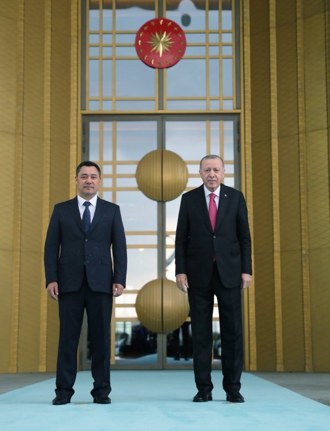 Cumhurbaşkanı Recep Tayyip Erdoğan, Kırgızistan Cumhurbaşkanı Sadır Caparov'u resmi törenle karşıladı.