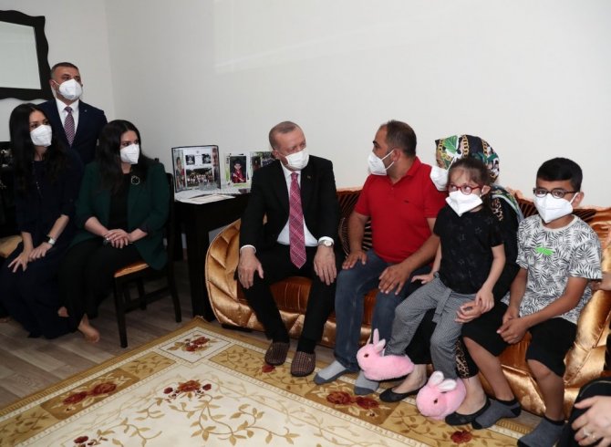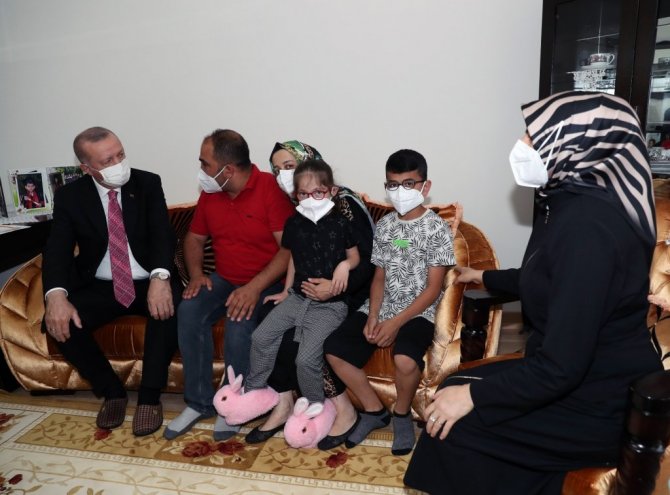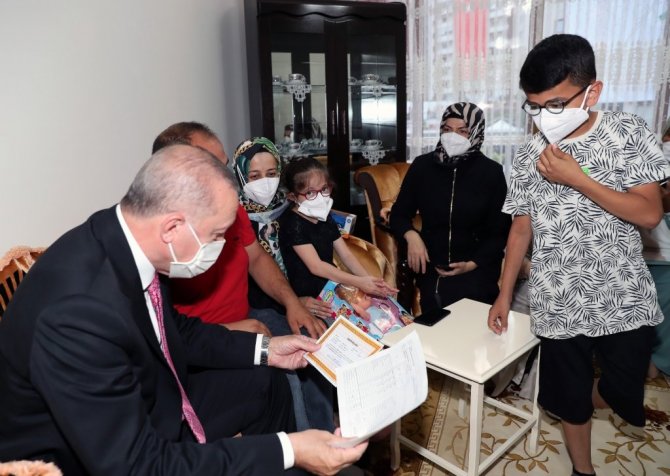 Ailenin çocuklarının karnelerini de inceleyen Erdoğan, kendisine çizdiği resimleri gösteren küçük çocukla uzun süre sohbet etti karne hediyelerini verdi. Sağlık sorunu olan minik Yağmur ile de yakından ilgilenen Cumhurbaşkanı Erdoğan, doktorlarına küçük kızın sağlık durumunu takip etmeleri talimatını verdi.