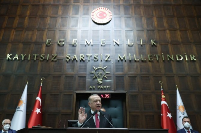 Cumhurbaşkanı Recep Tayyip Erdoğan, partisinin grup toplantısında konuştu. Meclis faaliyetlerinin yakından takip edildiğini belirten Erdoğan, "Milletvekillerimizle gruplar halinde gerçekleştirdiğimiz kahvaltılı değerlendirme toplantılarımızı Brüksel ve Bakü'ye yapacağımız ziyaretlerimizin ardından 24 Haziran'da yeniden başlatıyoruz. Milli iradenin tecelligahı olan bu çatı altında ortaya konan her gayret, elde edilen her netice ülkemizi hedeflerine bir adım daha yaklaştırmaktadır. 23 Nisan 1920'den beri elde edilen ve hizmet bayrağının bugünkü temsilcileri olan sizler artık çok daha büyük bir sorumlulukla karşı karşıyasınız. Cumhuriyet tarihindeki en kapsamlı ve iddialı vizyon programı olan 2023 hedefleri ile ülkemizi buluşturma misyonu sahiplerinin en başında yasama boyutu ile mecliste, siyaset boyutu ile şehirlerimizde sizler geliyorsunuz. Biri İstiklal Harbi'ne, biri 15 Temmuz'da olmak üzere iki defa gazilik unvanı ile şereflenen meclisimiz her dönemde zorlu imtihanlardan geçmiştir. Vatanımızın dört bir yandan işgale uğradığı bir dönemde Ankara'da toplanan, egemenlik kayıtsız şartsız milletindir diyerek zafere ulaştıran bu meclistir. Çok partili hayata geçişimizde tek parti faşizminin baskılarına ve kötü mirasına rağmen Türkiye'yi demokrasi ve milli irade üstünlüğü ile yine bu meclis tanıştırmıştır" dedi.