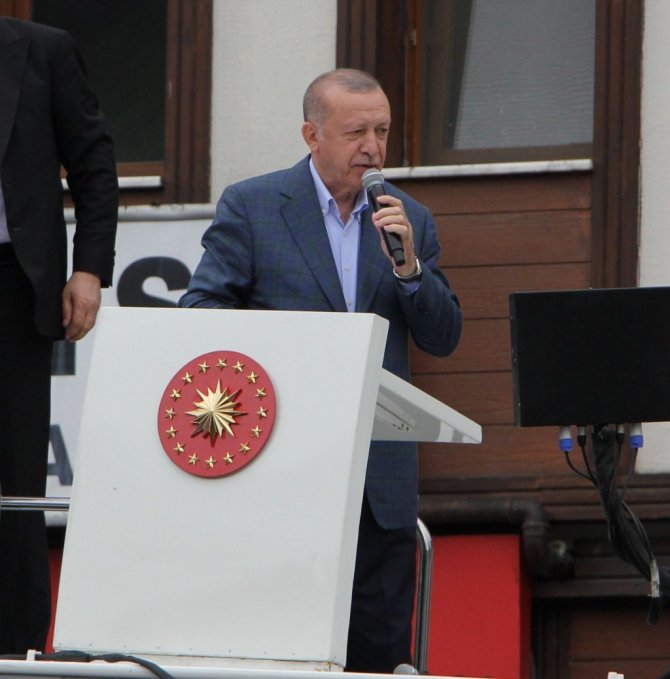 Afet haberinin ardından devletimizin tüm imkanlarını seferber ederek kurumlarla birlikte çalışmaları yerinde koordine etmek üzere Bakanların hemen bölgeye geldiğini ifade eden Cumhurbaşkanı Erdoğan, "AFAD'dan Kızılay'a, Jandarma'dan Sahil Güvenliğe kadar diğer kurumlarımızın süratle bölgeye intikalini sağladık. Bu süreçte mücavir illerden 127 personel ve 39 araçtan oluşan toplam 8 ekibi de ilimize sevk ettik. Şuana kadar ilimizde 328'i arama kurtarma personeli olmak üzere toplam 2 bin 860 personel ve 705 araç görev yapmıştır. Afetten dolayı kapanan 426 yolun tamamı ulaşıma açılmıştır. Afet bölgesinin tamamınsa su verilmiş olup elektrik ve haberleşme de sıkıntı yoktur. Kızılayımız selden etkilenen vatandaşlarımıza evlerinin bulunduğu bölgelerde ve mahallelerde sıcak kumanya ve içecek ikram etmiştir. Gerek AFAD gerek Sosyal Yardımlaşma Vakfı aracılığıyla selden zarar gören vatandaşlarımıza kira ve diğer ilgili yardımlar yapılmaya başlanmıştır. Bu kapsamda acil ihtiyaçlar için ilimize tahsis edilen 18 milyonluk kaynaktan 3 milyonu vatandaşlarımıza ulaşmıştır. Binaların hasar tespitleri 50 ayrı ekip tarafından 7/24 esasına göre çalışılarak 2 gün içerisinde tamamlanmıştır. 4 bölgede toplam 1207 bina, 3 bin 118 bağımsız bölümde hasar tespit çalışmaları yapıldı. Bunlardan ağır hasarlı acil yıkılması gereken ve yıkılmış olan 47 bina ve 99 bağımsız bölüm vardır. Rize'de dere güzergahlarında yapılan çalışmalarda taşkın riski altında olduğu 665 yapı tespit edildi. Bir taraftan bu riskli bölgelerin hızlıca boşaltılmasını sağlarken diğer taraftan yaraların süratle sarılması için tedbirlerimizi alıyoruz. TOKİ ile selden en fazla etkilenen 4 ilçede proje çalışmalarını başlattık. Köylerde yöresel köy evlerimiz, merkezde ise zemin artı 3-4 katı geçmeyecek konutlarımızı inşa edeceğiz. İlk etapta Rize genelinde 15 Temmuz'daki sel felaketinden etkilenen toplam 550 konut inşa edeceğiz. Köylerde altında ahır olan 50 adet köy evi yapacağız. Vatandaşlarımızın ihtiyacı doğrultusunda 5 adet çay evi yapmaya karar verdik. Bir yıl içinde konutlarımızı tamamlayarak vatandaşlarımızı güvenli yuvalarımıza kavuşturacağız. Evleri taşkın riski altındaki vatandaşlarımızı da inşa ettiğimiz konutlara taşıyacağız. Salarha tünelinin de açılışını yapacağız. Rize'de hayatı en kısa sürede normale döndürecek adımları atacağız" dedi.