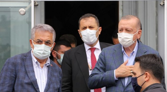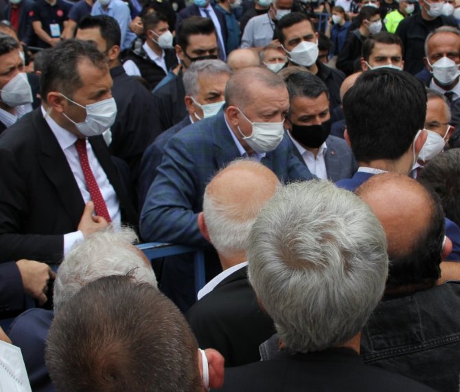 Şiddetli yağışlar nedeniyle sel felaketinin yaşandığı Rize ve Artvin'de incelemelerde bulunmak üzere bugün öğle saatlerinde memleketi Rize'nin Güneysu ilçesine gelen Cumhurbaşkanı Erdoğan, Güneysu Merkez Camisi'ndeki Cuma Namazı sonrası hemşehrilerinin cami çıkışında sıkıntılarını dinledi, "Geçmiş olsun" dileklerini iletti.