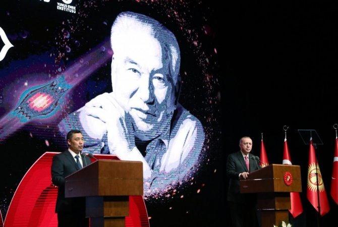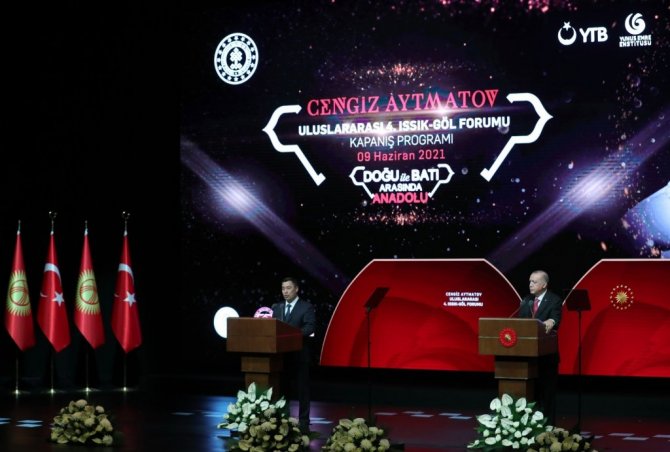 Cumhurbaşkanlığı Millet Kültür ve Kongre Merkezi'nde düzenlenen Cengiz Aytmatov Uluslararası 4. ISSIK-Göl Forumu'na Cumhurbaşkanı Erdoğan, Kırgızistan Cumhurbaşkanı Sadır Caparov ile birlikte katıldı. İki ülke arasındaki dostluk ve kardeşlik bağlarını tahkim edecek her adımı cumhurbaşkanları olarak desteklemekte kararlı olduklarını söyleyen Cumhurbaşkanı Erdoğan, "Kardeşliğimizin ve dayanışmamızın en büyük gücü gönül, kültür ve medeniyet coğrafyamızın sancakları, bayrakları ve yol başçılarıdır. Kalem ve kelam erbabı değerlerimiz sayesinde canlılığını devam ettiren köklerimizden çiçek açıyor, yaprak açıyor, serpiliyor ve hep birlikte o ulu çınarların altında büyük bir aile olarak toplanıyoruz. Sahip olduğumuz medeniyet ve kültür hazinemizi işleyen yazarlarımız, şairlerimiz ve fikir adamlarımız yeniden diriliş ve yükseliş için bize yön gösteriyor, yol gösteriyor. Büyük şairimiz Yahya Kemal, Türkçe için "ses bayrağımız" diyor. Cengiz Aytmatov, işte bu bayrağı Türkistan coğrafyasının kutup yıldızı olarak tüm dünyada parıldayan, kalpleri buluşturan, gönülleri kuşatan bir sancak haline getiren değerlerimizin başında geliyor. Bu öyle bir sancak ki, üzerimizdeki asırlık küllerden silkinip yeniden ayağa kalkmamızı, hep birlikte yükselmemizi sağlıyor" diye konuştu.