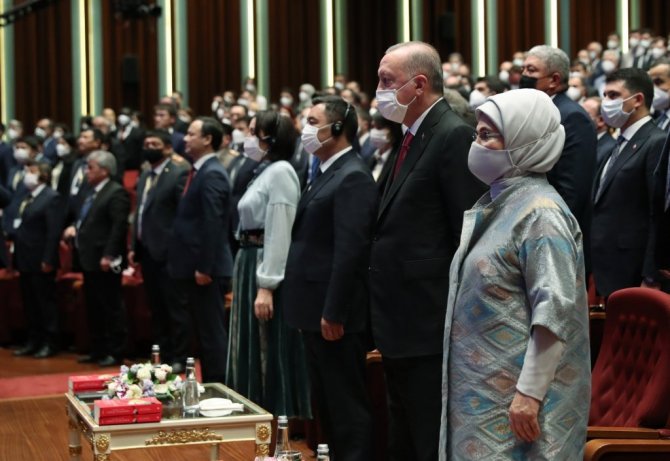Cumhurbaşkanı Recep Tayyip Erdoğan, "Kalem ve kelam erbabı değerlerimiz sayesinde canlılığını devam ettiren köklerimizden çiçek açıyor, yaprak açıyor, serpiliyor ve hep birlikte o ulu çınarların altında büyük bir aile olarak toplanıyoruz" dedi.