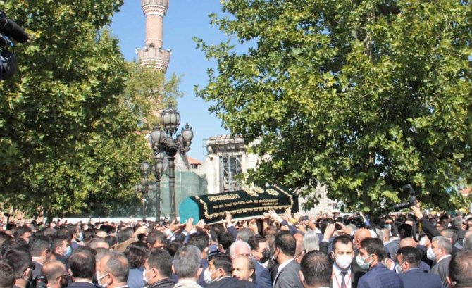 Öğle vakti kılınan cenaze namazına, Erdoğan'ın yanı sıra, TBMM Başkanı Mustafa Şentop, MHP Genel Başkanı Devlet Bahçeli, CHP Genel Başkanı Kemal Kılıçdaroğlu, Saadet Partisi Genel Başkanı Temel Karamollaoğlu, Büyük Birlik Partisi Genel Başkanı Mustafa Destici, Gelecek Partisi Genel Başkanı Ahmet Davutoğlu ve Deva Partisi Genel Başkanı Ali Babacan, Saadet Partisi eski Genel Başkanı Recai Kutan, AK Parti Genel Başkanvekili Numan Kurtulmuş, AK Parti Genel Sekreteri Fatih Şahin ve çok sayıda vatandaş katıldı.