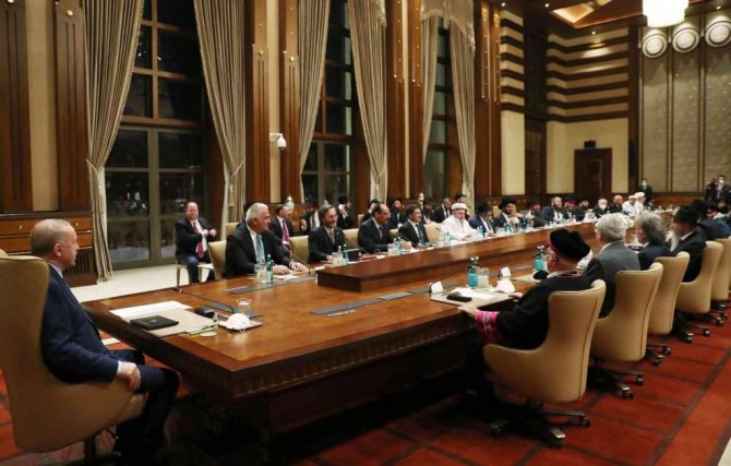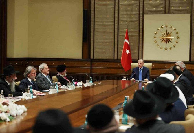 Cumhurbaşkanı Recep Tayyip Erdoğan, Cumhurbaşkanlığı Külliyesi'nde Türk Yahudi Toplumu ve İslam Ülkeleri Hahamlar İttifakı Üyelerini kabul etti. İslam ülkeleri Hahamlar İttifakı'nın mensuplarını ve Türk Yahudi Topluluğu'nun üyelerini ağırlamaktan memnuniyet duyduğunu ifade eden Erdoğan, konuklarına hitap ettiği konuşmasında, "İshak İbrahimzade'ye bu güzel buluşmaya vesile olduğu için ayrıca teşekkür ediyorum. Sizlerin şahsında tüm Musevileri şahsım ve milletim adına gönülden selamlıyorum. Ülkemizde geçirdiğiniz süre zarfında Türkiye'nin zengin kültürünü, kadim tarihini ülkemizdeki barış ve hoşgörü iklimini bizzat müşahede etme fırsatı bulacağınıza inanıyorum Türkiye Hahambaşılığının desteğiyle İstanbul'da bir araya geldiğinizi de memnuniyetle öğrendim. İstanbul'umuzun bu buluşma için en anlamlı şehirlerden biri olduğu aşikardır. Bildiğiniz gibi Fatih sultan Mehmet İstanbul'u fethettikten sonra şehrin kültürel zenginliğini artırmak için Haliç'in iki yakasında ikamet eden Yahudi cemaatlerini İstanbul'a davet etmiştir. Davete icabet ederek İstanbul'a gelen Yahudiler, bu benzersiz şehrin hayatına büyük katkı sağlamışlardır" dedi.