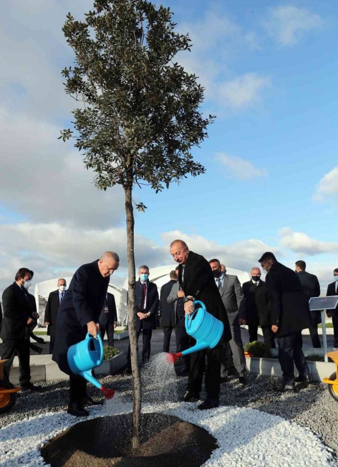 Cumhurbaşkanı Recep Tayyip Erdoğan, Azerbaycanlı mevkidaşı İlham Aliyev ile birlikte Zengilan'da Türkiye'nin de katkılarıyla inşa edilecek olan Akıllı Tarım Kampüsü'nün temel atma törenine katıldı.