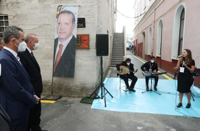Cumhurbaşkanı Recep Tayyip Erdoğan Sultanahmet Mesleki ve Teknik Anadolu Lisesinde düzenlenen 2021-2022 Eğitim Öğretim Yılı Açılış Programı'na katıldı. Törende konuşan Erdoğan 2021-2022 yılının öğrenci ve öğretmenler için hayırlı olmasını diledi.