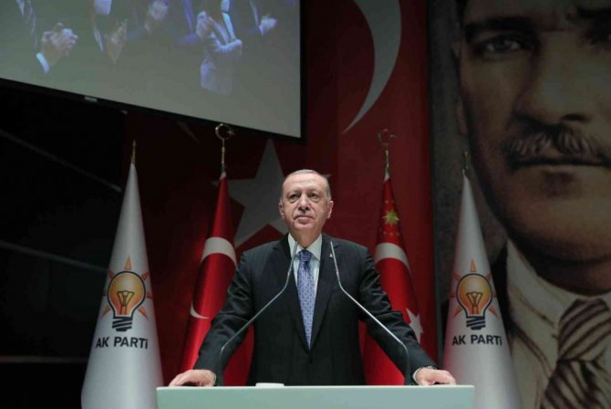 Erdoğan, AK Parti'nin geçmişten bugüne oy oranlarına ilişkin verileri paylaşarak, "Türkiye'nin yakın döneminde yaşadığı en alçak saldırı olan 15 Temmuz Darbe Girişiminin ardından Cumhur İttifakı'nın temellerini attığımız 2017 anayasa değişikliği halk oylamasını gerçekleştirdik. Yüzde 51, 4'lük evet oyuyla sonuçlanan bu halk oylamasıyla tarihimizde ilk defa milli irade eliyle ve doğrudan milletimizin tercihi ile yönetim sistemimizi değiştirdik. Böylece milletimiz, demokrasimize yönelik darbe girişimine cevabını yönetim değişikliği ile, demokrasimizin çıtasını en üst seviyeye çıkartarak vermiş oldu. Cumhurbaşkanlığı hükümet sisteminin ilk seçimini de 24 Haziran 2018 tarihinde yaptık. Vakit Türkiye Vakti" sloganıyla milletimizin huzuruna çıktığımız bu seçimden Cumhurbaşkanlığında yüzde 52, 6 oy oranına ulaştık. Mecliste ise AK Parti olarak yüzde 42, 6 ve Cumhur İttifakı olarak yüzde 53, 7 düzeyinde bir oy oranı elde ettik. Son olarak 31 Mart 2019 mahalli idareler seçimlerine ne dedik? "Memleket işi Gönü İşi " sloganıyla girerek yüzde 44, 3 seviyesinde oy aldık. Bu seçimde de Cumhur İttifakı'nın oy oranı yüzde 52 düzeyine ulaşarak milletin gönlündeki yerimizi teyit ettik" ifadelerini kullandı.