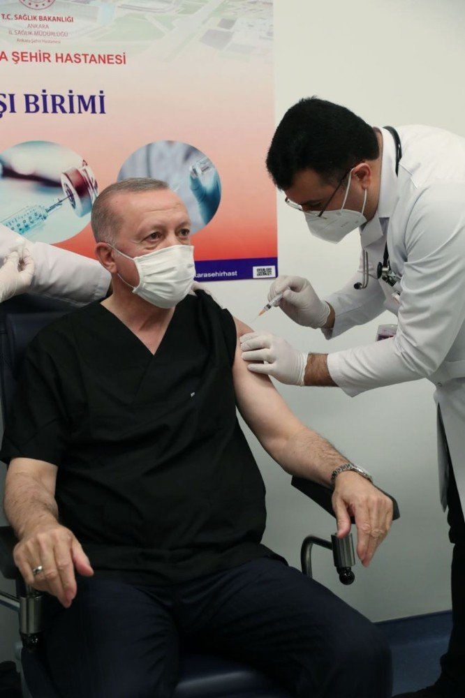 Cumhurbaşkanı Recep Tayyip Erdoğan, Çin'den getirilen Covid-19 aşısını oldu.