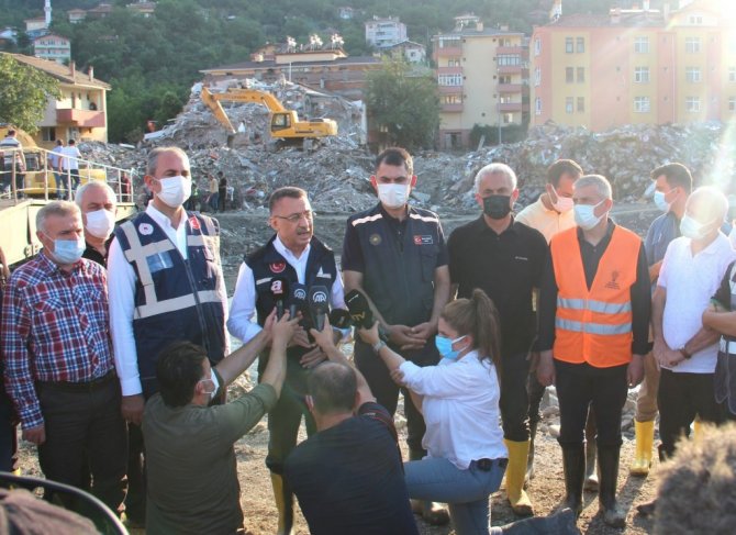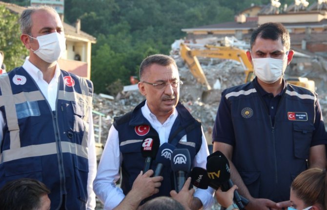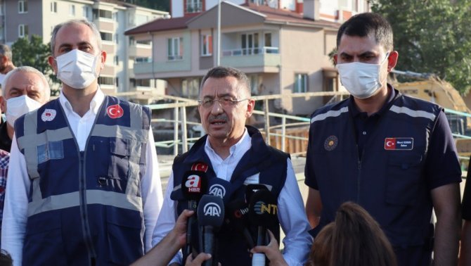 Cumhurbaşkanı Yardımcısı Fuat Oktay, sel afetinin yaşandığı Kastamonu, Bartın ve Sinop'u 1 yıl içerisinde ayağa kaldıracaklarını belirterek, afet oluşturabilecek yerlerde yapılaşmadan sakınılmasını istedi.