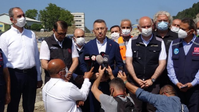 Sel felaketinden etkilenen Ayancık ilçesini ziyaret eden Cumhurbaşkanı Yardımcısı Fuat Oktay, "Elektrikte bir sıkıntımız yok. Suda bir sıkıntımız yok. Ana yollar dahil tüm yollarda, köy yollarında herhangi bir sıkıntımız kalmış değil. Çıkarma gemileriyle iş makinelerinin getirildiği bir afet yönetimini yaşıyoruz hamdolsun. 17 helikopter Sinop'ta herkesin ihtiyacına koştu" dedi.