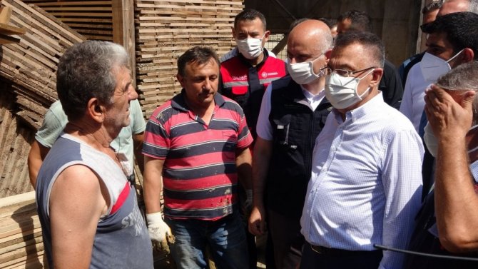 Sel felaketinden etkilenen Ayancık ilçesini ziyaret eden Cumhurbaşkanı Yardımcısı Fuat Oktay, "Elektrikte bir sıkıntımız yok. Suda bir sıkıntımız...