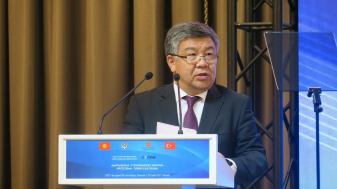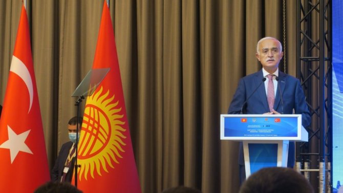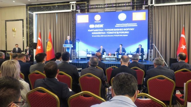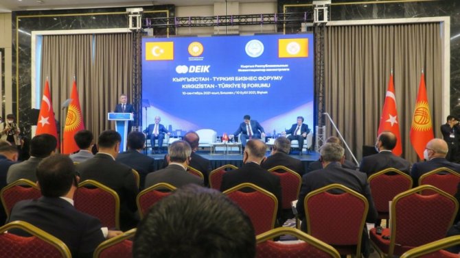 Kırgızistan'ın ülkemizdeki yatırımları ise 27 milyon dolar seviyesindedir ve 239 adet Kırgız sermayeli şirket Türkiye'de faaliyet göstermektedir. Bu rakamların bizim dostluğumuzu, soydaşlık bağlarımızı yansıttığını söylemek ve bu seviyeleri kabullenmek mümkün değil. İlk etapta belirlediğimiz 1 milyar dolarlık ticaret hacmi hedefi dahi aslında sahip olduğumuz potansiyelin çok çok altındadır. Ticari ilişkilerimiz tekstil, demir-çelik ürünleri, lojistik, makine ve tarım ürünleri gibi kalemlerin ötesine geçerek enerji, maden, savunma sanayi ve teknoloji ürünleri gibi alanlara yayılmaya müsaittir" açıklamasını yaptı.