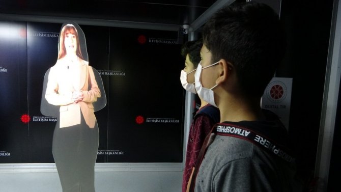Merkez Atatürk Bulvarı Orman İşletme Müdürlüğü karşısında konuşlanan dijital tırda gazetecilere açıklamalarda bulunan Cumhurbaşkanlığı İletişim Başkanlığı Erzurum Bölge Müdürü Recep Küçükece, Cumhurbaşkanlığı İletişim Başkanlığı Mobil İletişim Tırının, Türkiye'nin milli, tarihi, kültürel ve bilimsel teknolojik zenginliklerini dijital sunumlarla anlatan bir tır olduğunu söyledi. 19 Şubat'ta Edirne'den yola çıkan tırın 3-6 Ağustos tarihleri arasında Muş'ta tüm ziyaretçilere açık olacağını kaydeden Küçükece, "Dijital tırımızın içerisinde harekete duyarlı ekranlar, 3 boyutlu sanal kutu, yeşil perde ve sihirli ayna deneyimimiz bulunmaktadır. Özel olarak harekete duyarlı ekranımızda ileri teknoloji hareket algılama sistemleri sayesinde yanından geçen veya karşısında duran ziyaretçilerimizin hareketlerini algılayarak milli gururumuz olan Bayraktar SİHA'mızı kullanma deneyimi yaşıyoruz. Yeşil perdemizde ileri teknoloji veri işleme olanakları sayesinde özel bir materyal önünde ziyaretçilerimizin fotoğrafları çekiliyor, çekilen fotoğraflarla da SİHA Bayraktarımız veya 15 Temmuz'la ilgili bir hatıra fotoğrafını vatandaşlarımızın kendi e-posta adreslerine gönderiyoruz. 3 boyutlu sanal kutu deneyimimizde ise izleyicilere şu an için 15 Temmuz'la ilgili kısa bir hologram gösterisi sunulmaktadır. İlk açılış günü olmasına rağmen şu ana kadar yoğun bir ziyaretçi akını başlamıştır. Tüm halkımızı buraya bekliyoruz" dedi.
