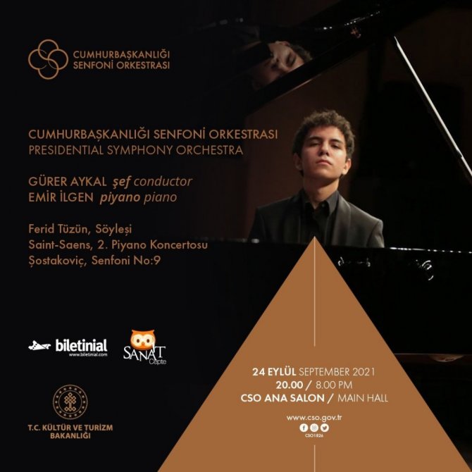"Yaz Konserleri" kapsamında Cumhurbaşkanlığı Senfoni Orkestrası ile gerçekleştirdiği Mozart, Respighi ve Muammer Sun kayıt konseri sonrasında duayen orkestra şefi Gürer Aykal ilk kez CSO Ana Salon'da dinleyici ile buluşuyor. Genç yeteneklerin desteklenmesi ve tanıtımı misyonunu taşıyan CSO, genç piyanist Emir İlgen ile 24 Eylül günü ilk defa aynı sahneyi paylaşıyor.