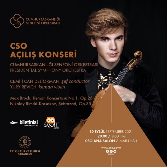 Temmuz - Ağustos 2021 döneminde "Yaz Konserleri" başlığı altında birçok etkinlik ve kayıt projesi gerçekleştiren CSO, yeni konser sezonunda da zengin repertuvarını dünyaca ünlü şef ve solistler eşliğinde Ankaralı dinleyicilerine sunuyor. Konser programında ünlü Rus besteci Nikolay Rimski-Korsakov'un "Binbir Gece Masalları'ndan esinlenerek yazmış olduğu senfonik suit Şehrazad ve Yury Revich'in eşsiz performansıyla Max Bruch'un 1. Keman Konçertosu yer alıyor. "2016 ECHO Klassik" ödülü sahibi Yury Revich, aynı zamanda Uluslararası Klasik Müzik Ödülleri'nde "Yılın Genç Sanatçısı" ödülünü kazanmış ve 2015 "Beethoven Center Vienna" tarafından verilen "Yılın Genç Müzisyeni" ödülüne layık görülmüştü. İlk kez 18 yaşında Carnegie Hall'da sahne alan Yury Revich, Berlin Filarmoni, Berlin Konzerthaus, Viyana Musikverein, Zürih Tonhalle, Viyana Konzerthaus ve Leipzig Gewandhaus gibi dünyanın en prestijli salonlarında konserler verirken, Olağanüstü performanslarının yanı sıra UNICEF ve Avusturya hükümeti ile birlikte yürüttüğü sosyal sorumluluk ve farkındalık projeleri ile tüm Avrupa'da adından söz ettiriyor.