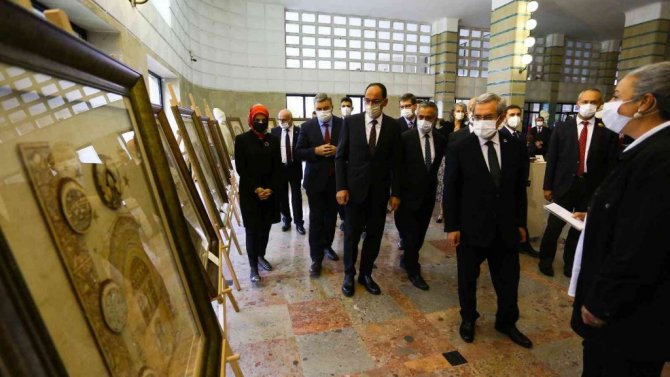 Kalın, konuşmasının ardından "Yunus Emre Gel Gör Beni" sergisini gezerek tabloları inceledi. Kalın, burada bir süre tasavvuf müziği dinletisi eşliğinde sanatçıların icra ettiği ebru çizimini izledi.