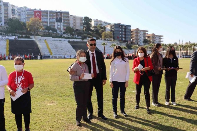 Törenin ardından Kuşadası Kaymakamı Sadettin Yücel ve Kuşadası Belediye Başkanı Ömer Günel Özer Türk Stadyumu'na geçti. Kaymakam Sadettin Yücel ile Başkan Ömer Günel, statta bulunan öğrencilerin ve vatandaşların Cumhuriyet Bayramı'nı kutladı.
