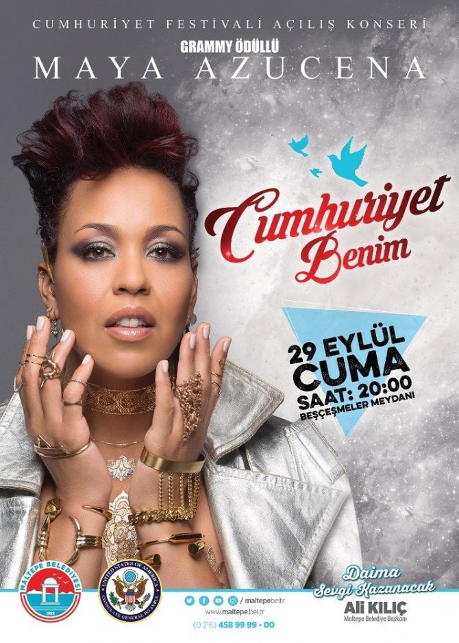 Grammy ödüllü sanatçı Maya Azucena, Maltepe Belediyesi’nin Cumhuriyet’in 94’üncü yılına özel olarak düzenlediği “Cumhuriyet Benim-Cumhuriyetimizin 94. yılını 94 etkinlikle kutluyoruz” etkinlikleri kapsamında 29 Eylül Cuma günü Maltepe’de sahne alacak.