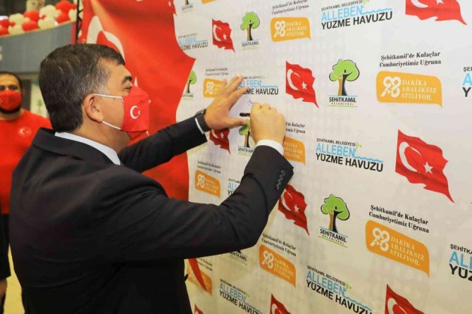 Farklı branşlarda Dünya, Avrupa ve Türkiye şampiyonu sporcular yetiştiren Alleben Yüzme Havuzu, katılımcı sayısı ve niteliği ile ilklere sahne olan birçok başarılı organizasyona ev sahipliğini sürdürüyor. Cumhuriyetin kuruluşunun 98. yıl dönümü kutlama etkinlikleri çerçevesinde Şehitkamil Belediye Başkanlığınca, Alleben Yüzme Havuzu'nda düzenlenen organizasyonda kulvarlarında yerini alan küçük, büyük, genç, yaşlı herkes, 98 dakika boyunca aralıksız kulaç attılar. Milli sporculardan rekortmenlere, özel sporculardan minik kulaçlara, öğretmeninden esnafına, sanayicisinden işçisine, ev hanımından bilim insanına kadar birçok farklı yaş ve meslek grubundan oluşan gönüllü bireyin katıldığı organizasyonda 29 Ekim Cumhuriyet Bayramı, büyük bir coşkuyla kutlandı.