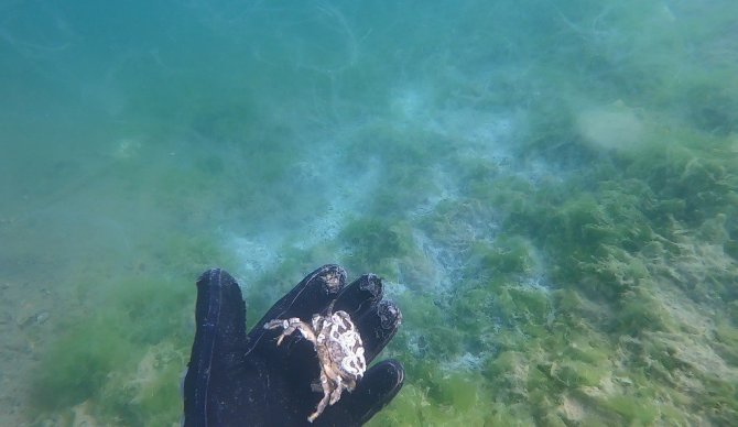 İzmit Körfezi'nin dibinde, dalgıç Levent Şişman tarafından görüntülenen deniz salyası, yengeçleri öldürdü.
