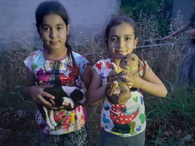 Köpekleri ağzı bağlı çuval içerisinden çıkarttıklarını ifade eden Nehir İslah, "Köpekleri çuvala koyup ağzını da bağlayıp yol kenarına bırakmışlar. Biz de seslerini duyduk çıkarttık çuvalın içerisinden. Çok acıkmışlar çok susamışlar biz de eve gidip poğaça su falan getirip besledik. Köpeklere sahip çıkalım, onları besleyelim sahiplenelim. Biz bu köpekleri sahiplendik. Bizden almak isteyenlerde köpekleri bizden alabilirler" diye konuştu.