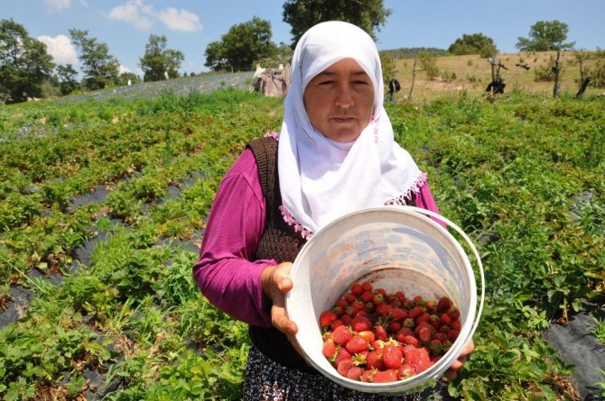 Çilek üreticisi Selime Kaymaz(45) “ Çileğimizin aroması güzel, çileklerin içinde birinci olarak gösteriliyor. Dağ havasında yetiştiği için tamamen doğal oluyor” dedi.