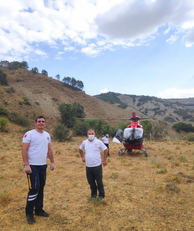 Dağda rahatsızlanan çobanın imdadına ambulans helikopter yetişti