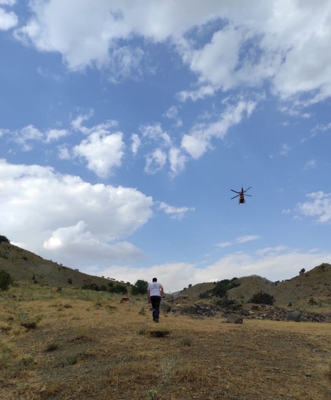 Elazığ'da dağda hayvanlarını otlattığını sırada rahatsızlanan 60 yaşındaki Sami Aydemir için sağlık ekipleri seferber oldu. Sağlık çalışanlarının 3 saat yürüyerek ilk müdahalesini yaptığı Aydemir, ambulans helikopterle hastaneye kaldırıldı.