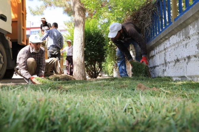 Malatya'nın Battalgazi Belediyesi Park ve Bahçeler Müdürlüğü ekipleri, daha yeşil bir Battalgazi hedefi doğrultusunda ilçenin farklı noktalarında tamamladığı park ve yürüyüş alanlarında hazır rulo çim serim çalışmalarını sürdürüyor.