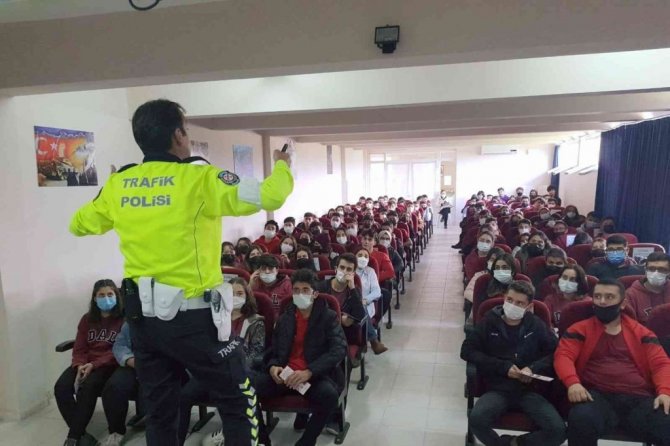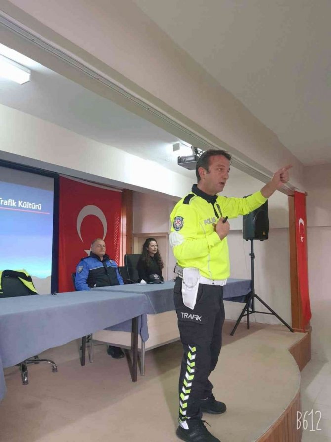 Muğla'nın Dalaman ilçesinde öğrencilere trafik güvenliği ve Kadın Destek Uygulaması (KADES) hakkında bilgilendirme yapıldı.