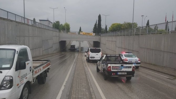 Dalçıkta biriken su sürücülere zor anlar yaşattı