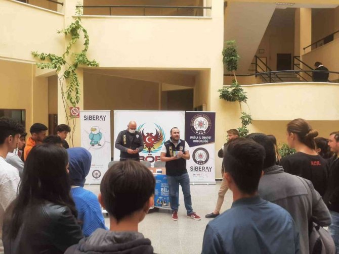 Muğla Emniyet Müdürlüğü'ne bağlı Güvenlik Şube, Terörle Mücadele ve Siber Suçlarla Mücadele Şube Müdürlüğü, Siberay Projesi kapsamında Muğla'nın 13 ilçesinde gençlerle ve öğrencilerle bir araya gelerek çeşitli suçlar konusunda bilgilendirme faaliyetlerine devam ediyor.
