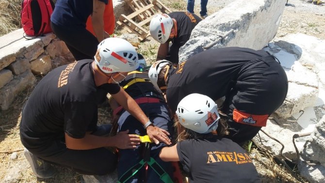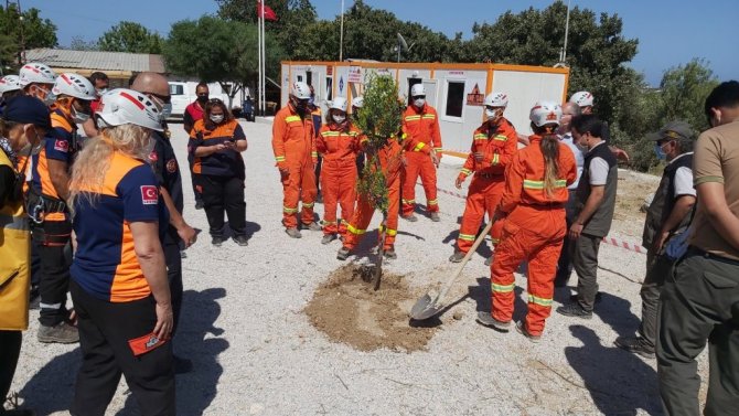 Gerçekleştirilen tatbikatta, yüksek binalardan yaralı kurtarma tanıtımı, enkaz altında kalan bir yaralının kurtarılması, yaralı afetzedenin taşınması ve sağlık ekiplerine teslim edilmesi çalışmaları sergilendi. Daha sonra ise eğitim merkezi bahçesine zeytin fidanı dikimi gerçekleştirildi.
