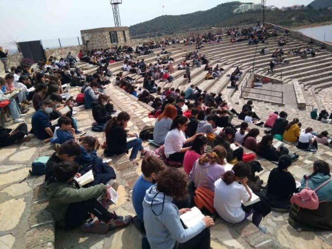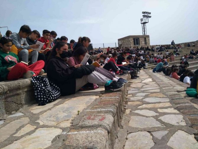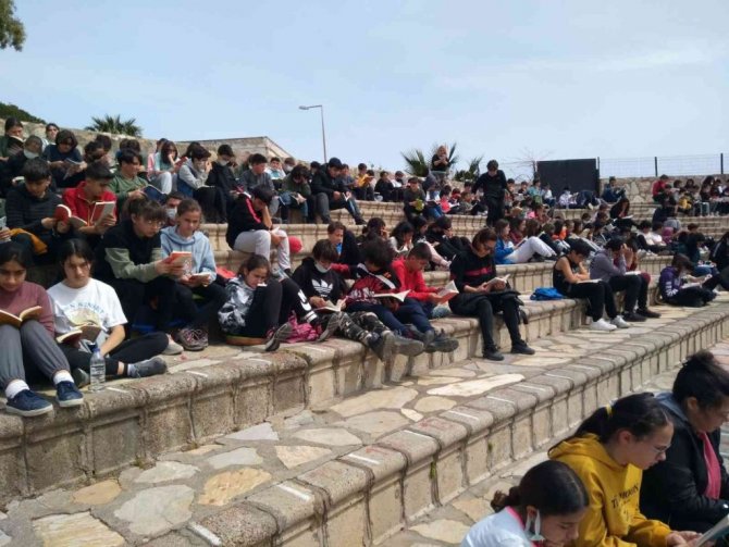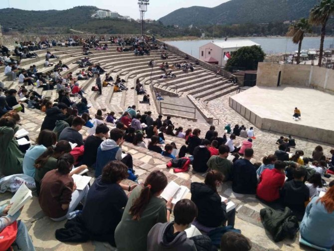 Muğla'nın Datça ilçesinde amfitiyatroda öğrenciler kitap okuma etkinliğinde buluştu.