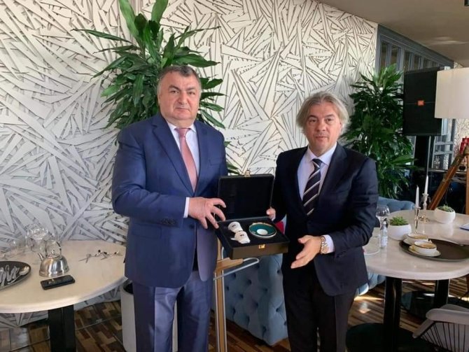 Görüşme sonunda ise DATÜB Genel Başkanı Ziyatdin Kassanov tarafından Kültür ve Turizm Bakan Yardımcısı Ahmet Misbah Demircan'a hediye takdimi yapıldı.