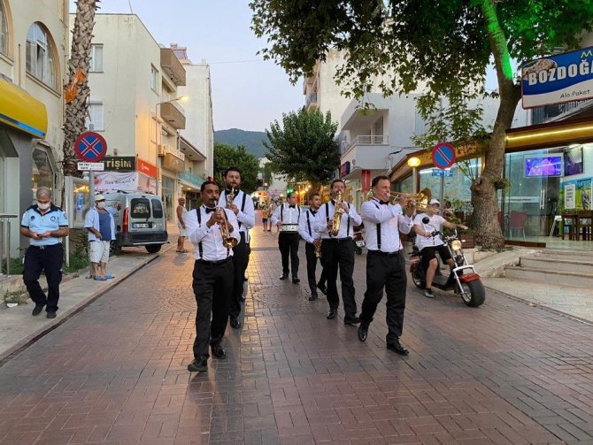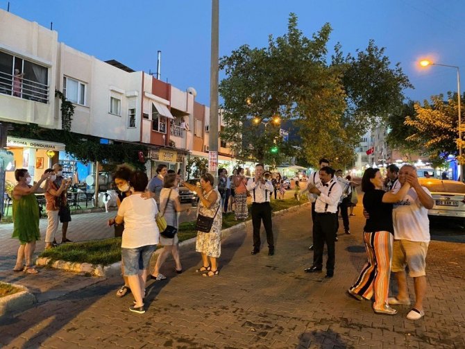 Kuşadası Belediyesi tarafından kurulan “Kuşadası Kent Orkestrası” kentin farklı noktalarında konser vermeye devam ediyor. Orkestranın Davutlar ve Güzelçamlı Mahalleleri’nde sergilediği canlı performansa vatandaşlar yoğun ilgi gösterirken, bazı çiftler konsere ‘Vals’ yaparak eşlik etti.
